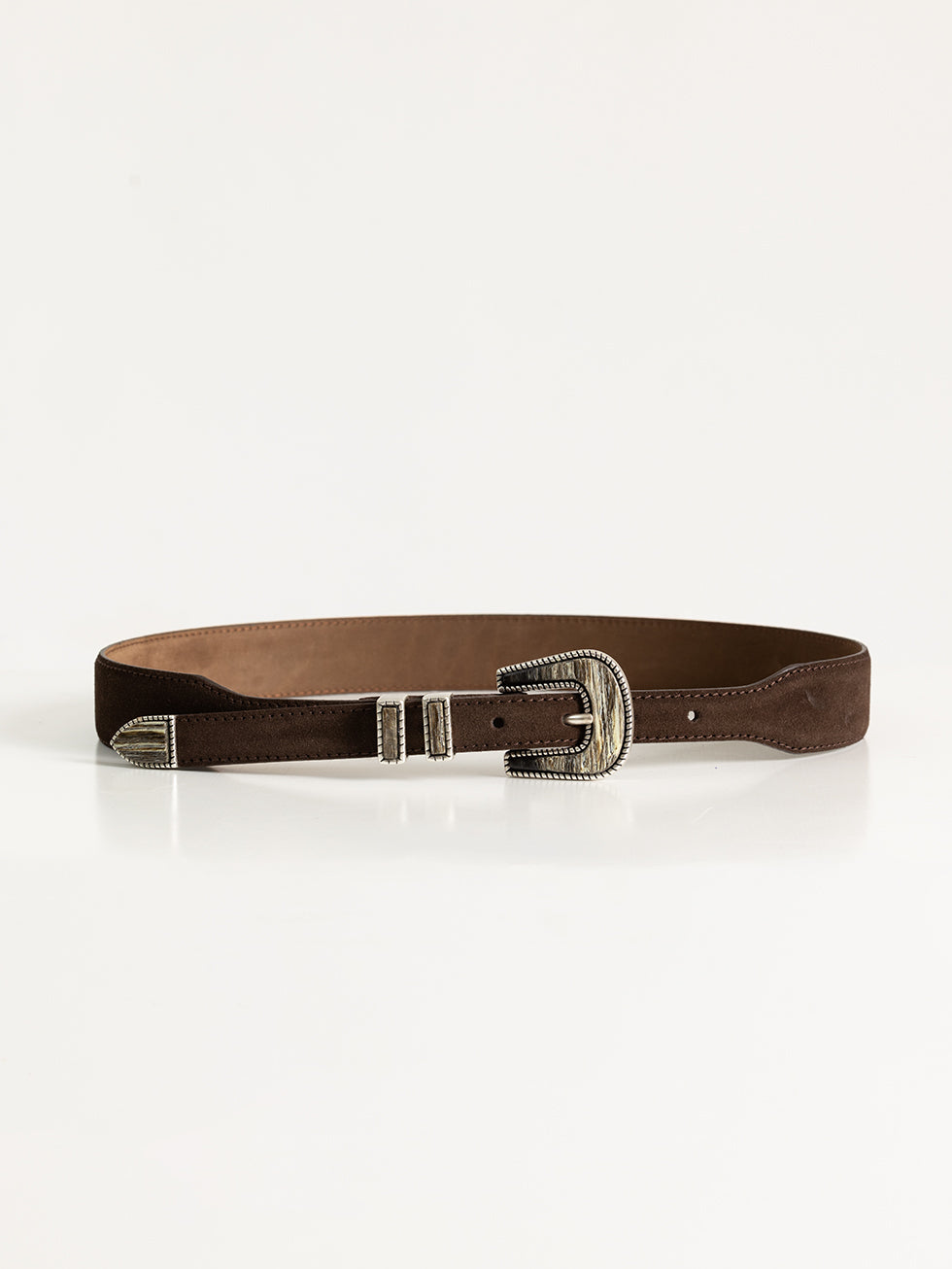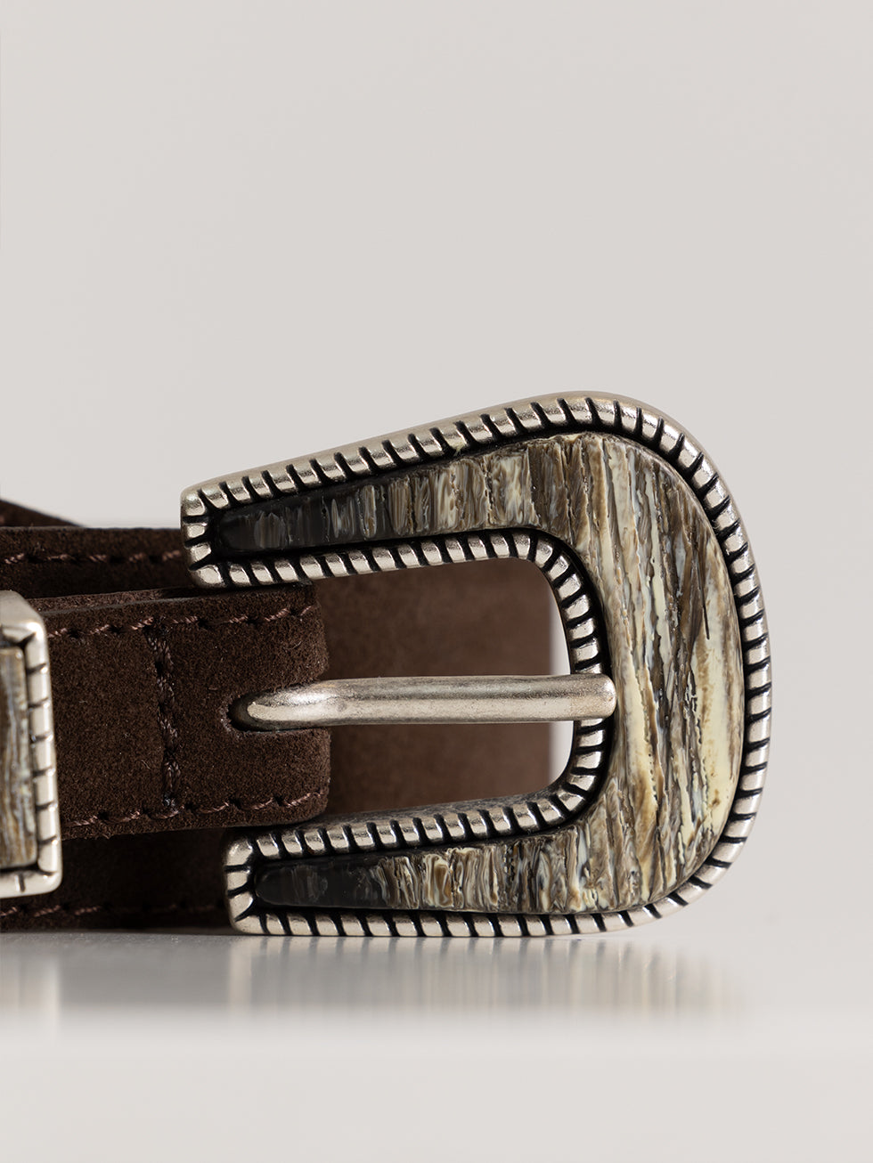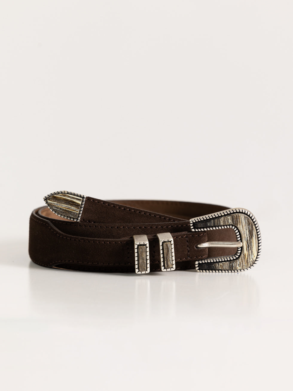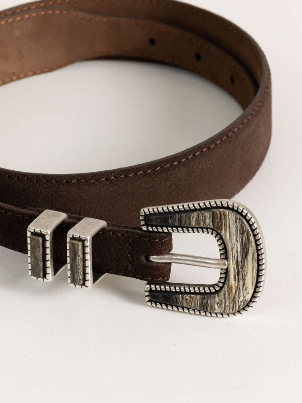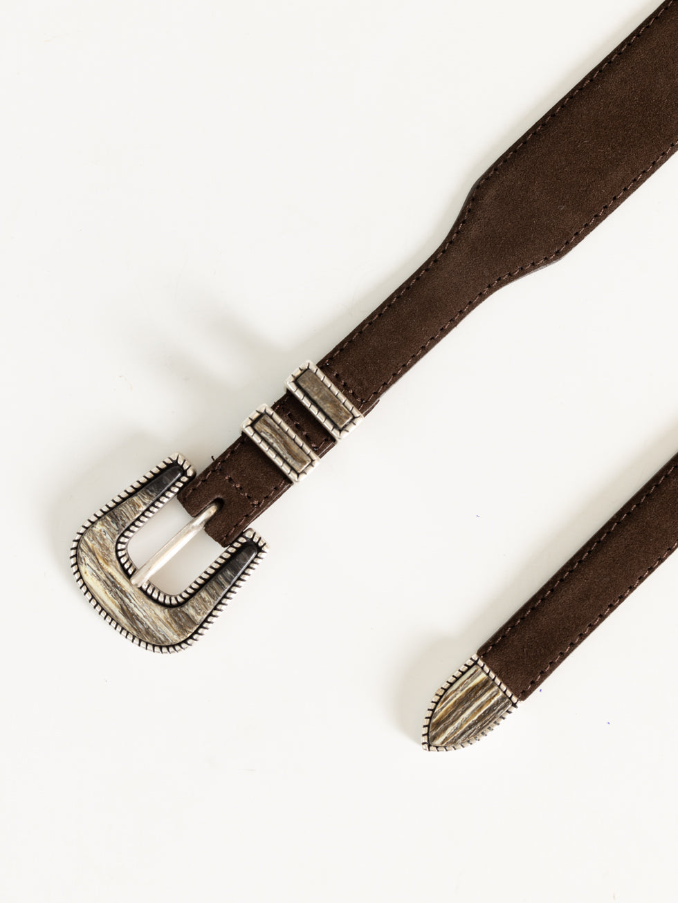 Lanzamos en colaboración con nuestros queridos amigos de Sartolane nuestro cinturón western en piel serraje chocolate con hebilla de latón y piedra natural incrustada